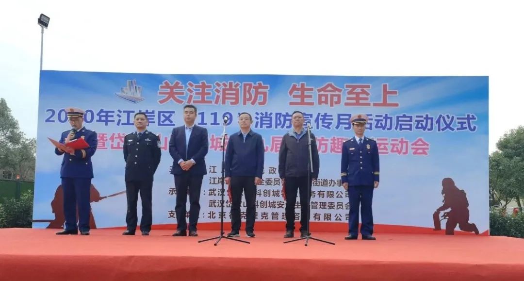 11月6日下午,2020年江岸區“119”消防宣傳月活動啟動儀式暨岱家山科創城第九屆消防趣味運動會在岱家山科創城足球場隆重舉行。江岸區各街道辦事處、百步亭社區、各派出所、街道微型消防站代表隊、武漢格晟工業技術有限公司企業有幸受邀參加,與園區內企業代表共500多人參加了本次活動。